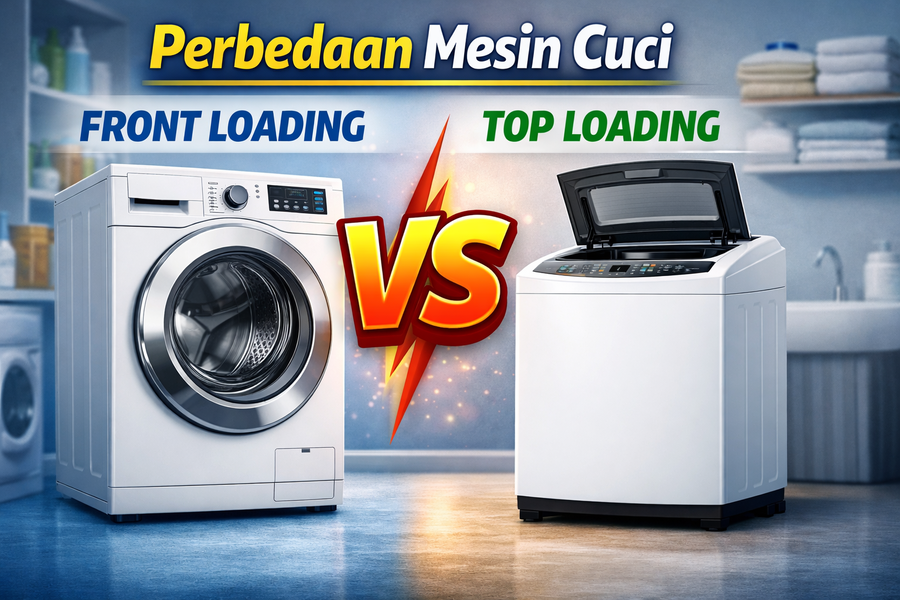 Ketahui perbedaan mesin cuci front loading dan top loading dari cara kerja, efisiensi air, listrik, hingga kenyamanan penggunaan untuk menentukan pilihan yang tepat.