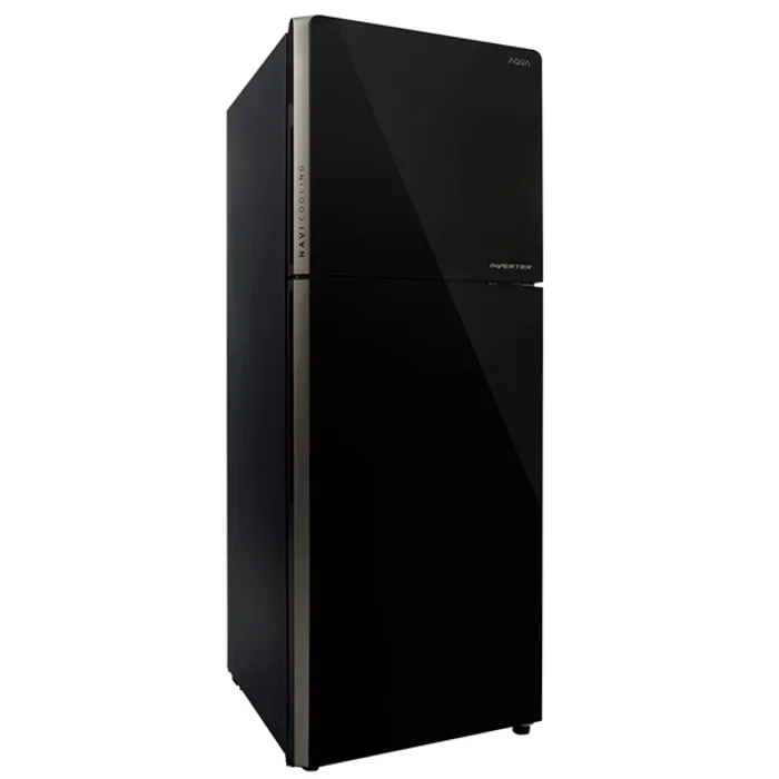 Kulkas AQUA Japan AQR355IGBK memiliki kapasitas Gros 270L yang memiliki tapilan fashionable atau elegan dengan warna hitam dan terdapat srtip atau garis berwarna emas di bagian ujung pintu.
