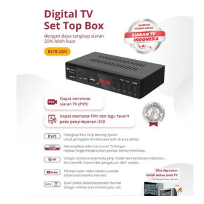 isi paket : Unit Set Top Box, Remote, garansi 1 tahun, kabel AV to RCA Set top box