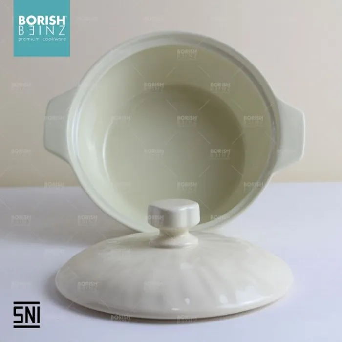 Spesifikasi Produk: 1. Berat: 1.373 grm 2. Diameter: dalam 8.5 inch 3. Tinggi: 8 cm 4. Lebar: 21 cm 5. Warna: Kuning Macaron 6. Material Ceramic 7. Ukuran tinggi dengan lid 13.5 cm 8. Ukuran diameter dengan handle 24.5 cm - Microwave & Dishwasher safe!!! - Harga Include Free Packaging & Bubble Wrap!!! - Memenuhi SNI (Standard Negara Indonesia) - Jaminan packaging aman sampai tujuan Seluruh produk Borish Beinz sudah melalui proses QC dgn kondisi 99%+ mulus, dikarenakan produk ini melewati proses pembakaran dgn temperatur tinggi, sehingga bintik hitam, gelembung tidak dapat dihindari (tidak mengurangi fungsi).