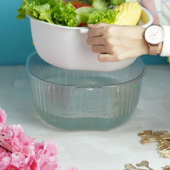 Tempat ini pun di lengkapi saringan pada lapisan kedua wadahnya. sehingga dapat dipakai untuk mencuci buah , sayuran dll