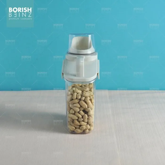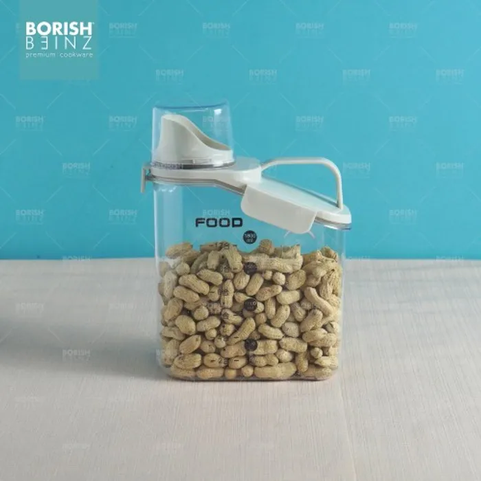 Toples penyimpanan dengan penutup takaran bening berbahan berkualitas dan kedap udara.