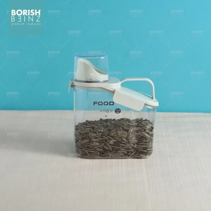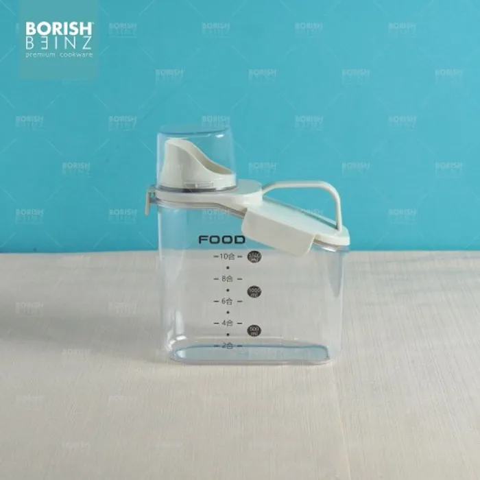 Toples penyimpanan dengan penutup takaran bening berbahan berkualitas dan kedap udara.