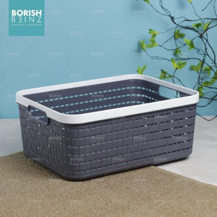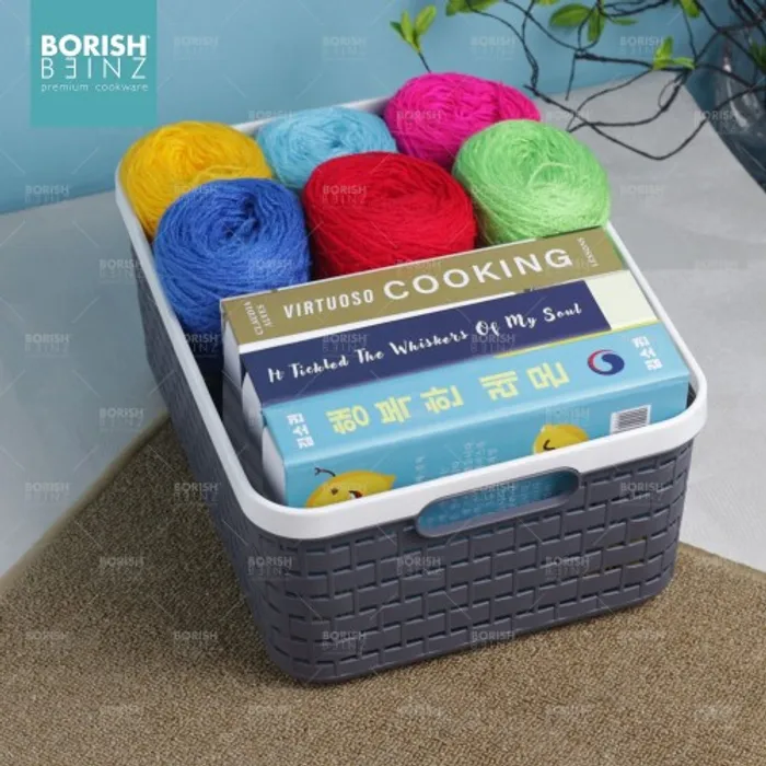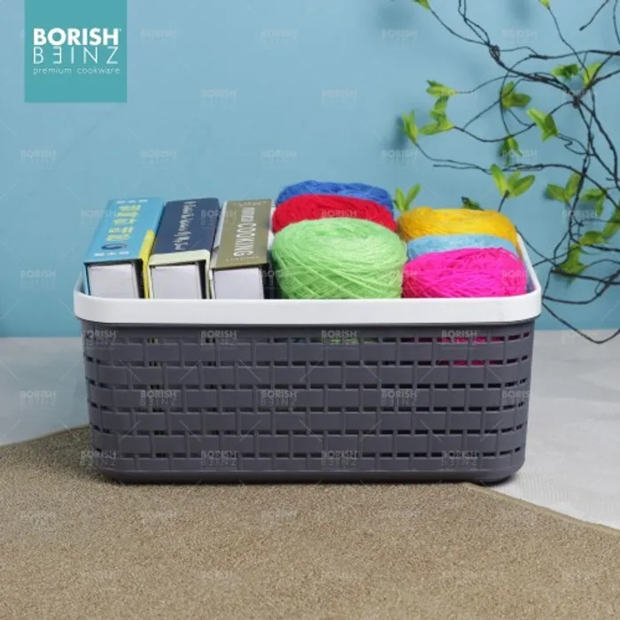 Keranjang serbaguna berbahan plastik tebal. Cocok untuk menyimpan aksesoris, kosmetik, snack, tempat souvenir.