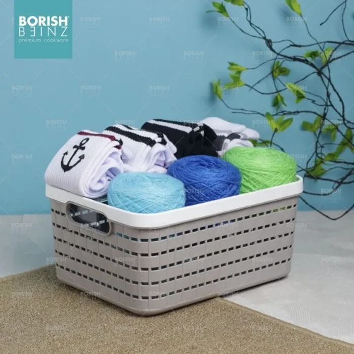 Keranjang serbaguna berbahan plastik tebal. Cocok untuk menyimpan aksesoris, kosmetik, snack, tempat souvenir.