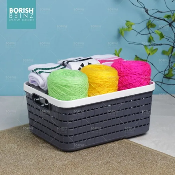 Keranjang serbaguna berbahan plastik tebal. Cocok untuk menyimpan aksesoris, kosmetik, snack, tempat souvenir.