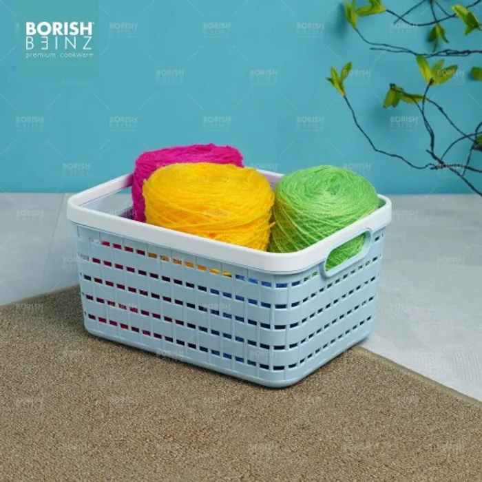 Keranjang serbaguna berbahan plastik tebal. Cocok untuk menyimpan aksesoris, kosmetik, snack, tempat souvenir.