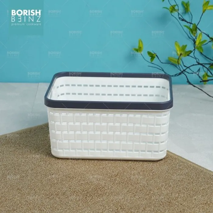 Keranjang serbaguna berbahan plastik tebal. Cocok untuk menyimpan aksesoris, kosmetik, snack, tempat souvenir.