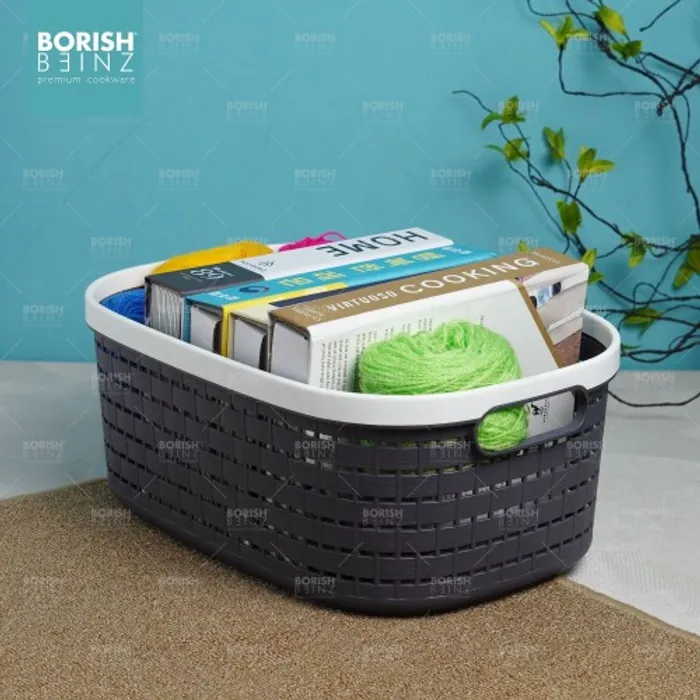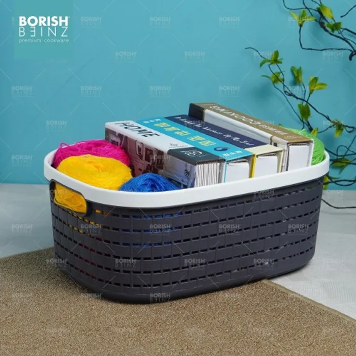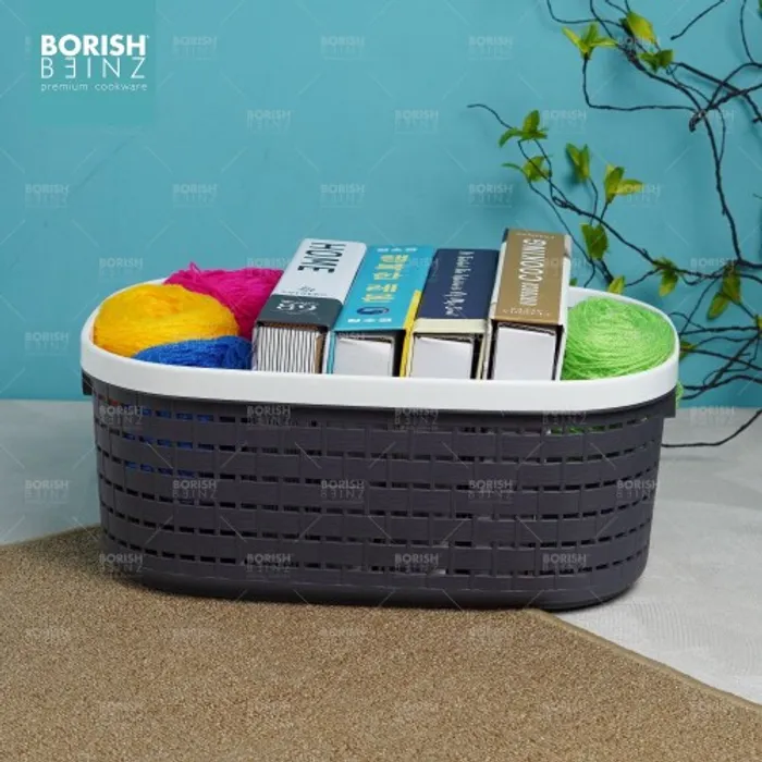 Keranjang serbaguna berbahan plastik tebal. Cocok untuk menyimpan aksesoris, kosmetik, snack, tempat souvenir.