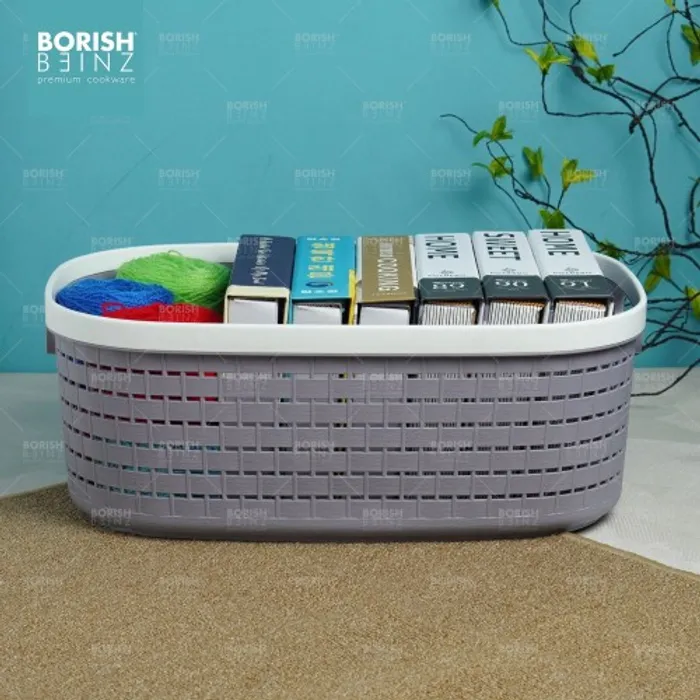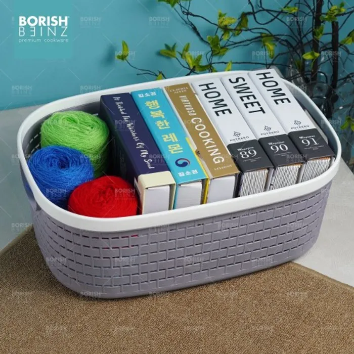 Keranjang serbaguna berbahan plastik tebal. Cocok untuk menyimpan aksesoris, kosmetik, snack, tempat souvenir.