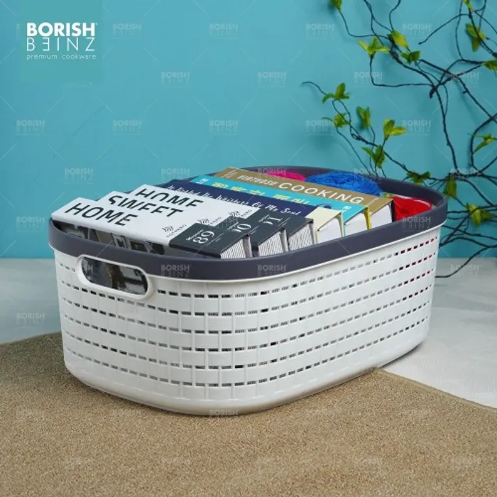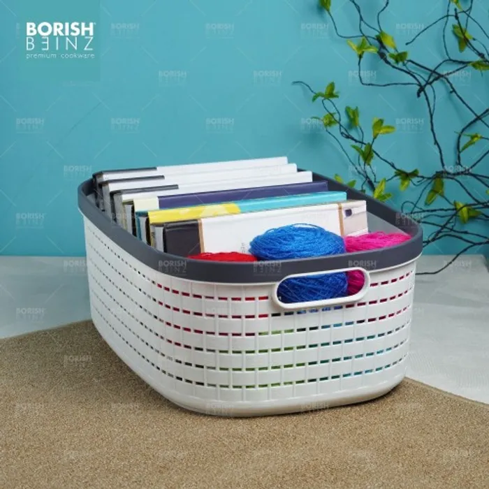 Keranjang serbaguna berbahan plastik tebal. Cocok untuk menyimpan aksesoris, kosmetik, snack, tempat souvenir.