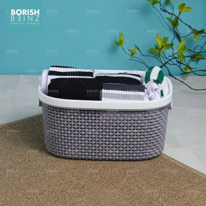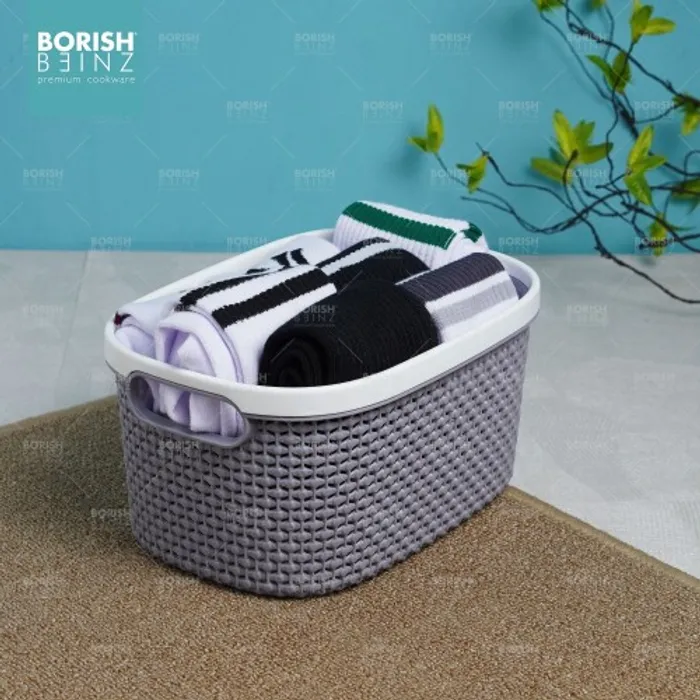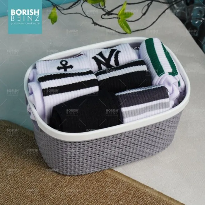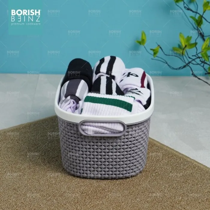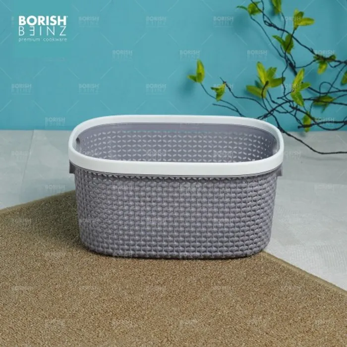 Keranjang serbaguna berbahan plastik tebal. Cocok untuk menyimpan aksesoris, kosmetik, snack, tempat souvenir.