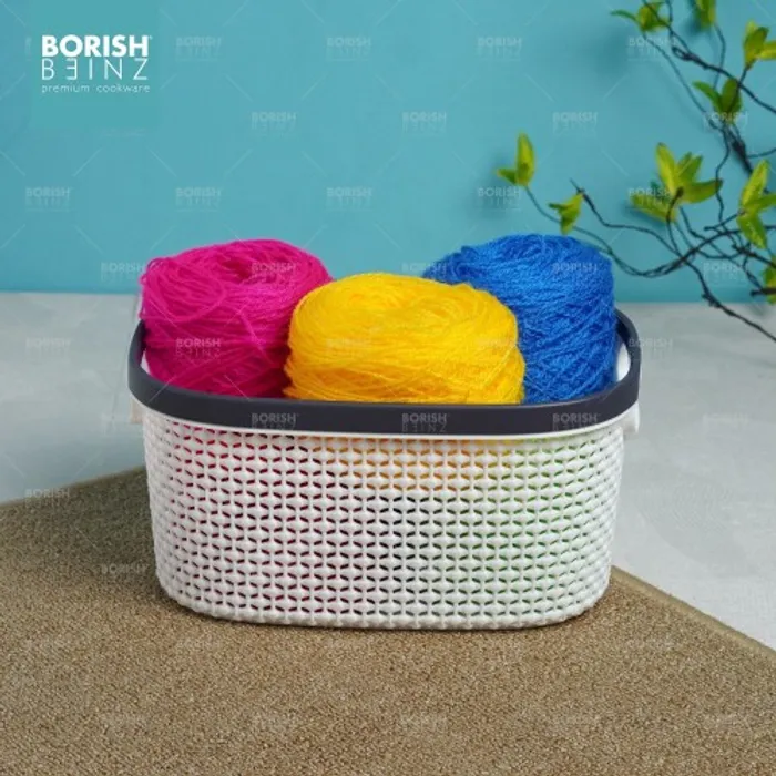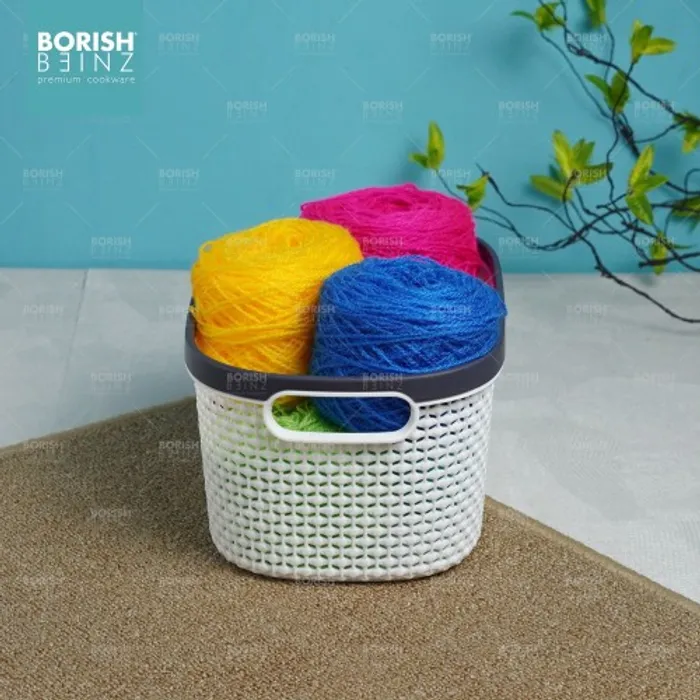 Keranjang serbaguna berbahan plastik tebal. Cocok untuk menyimpan aksesoris, kosmetik, snack, tempat souvenir.