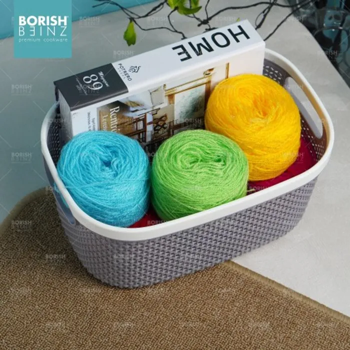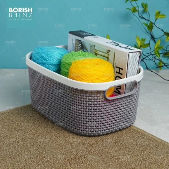 Keranjang serbaguna berbahan plastik tebal. Cocok untuk menyimpan aksesoris, kosmetik, snack, tempat souvenir.