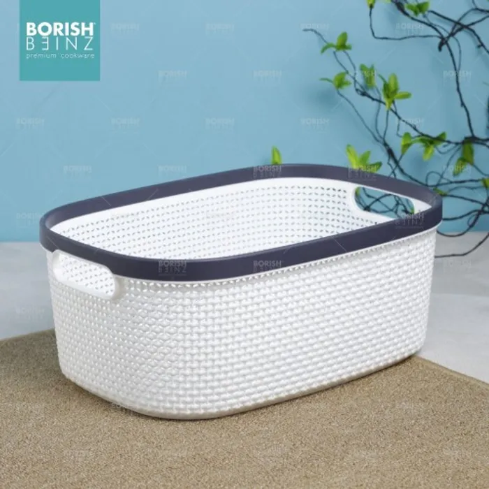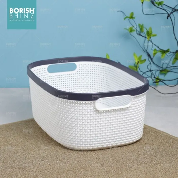 Keranjang serbaguna berbahan plastik tebal. Cocok untuk menyimpan aksesoris, kosmetik, snack, tempat souvenir.