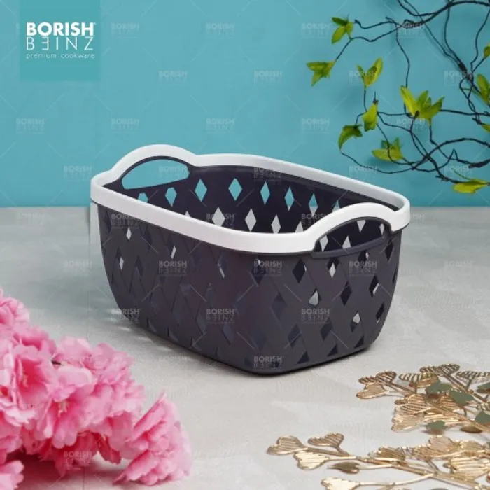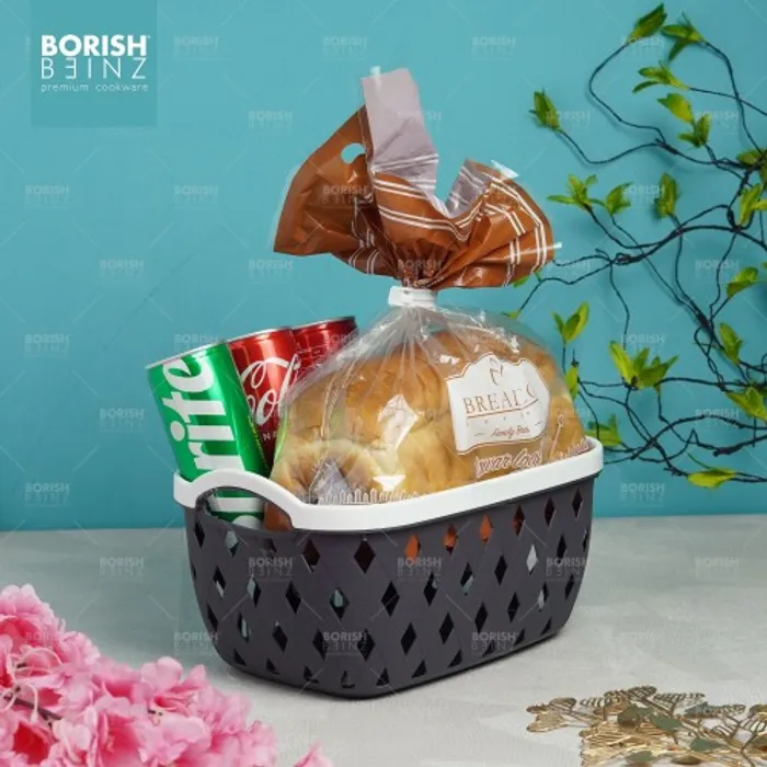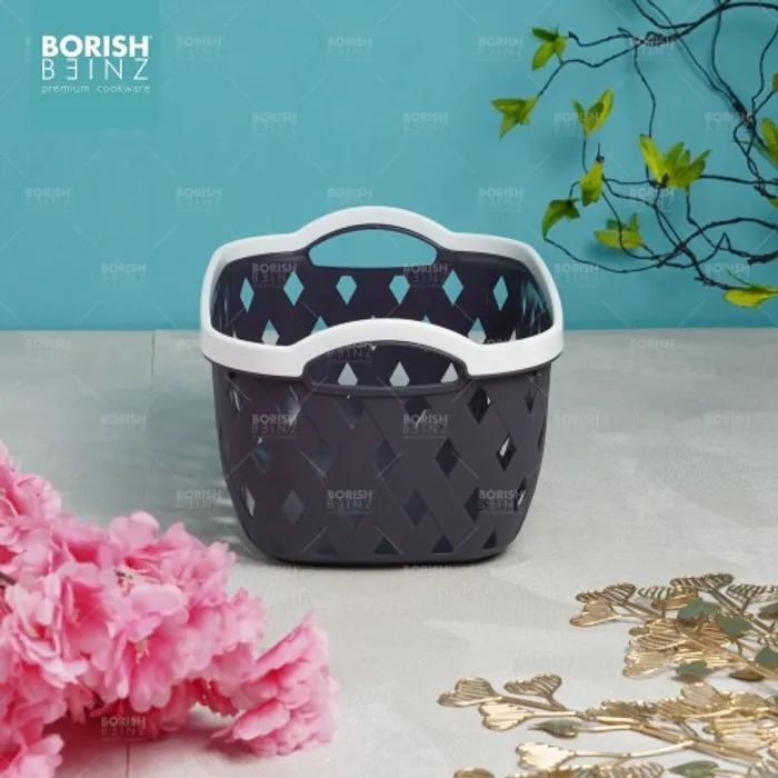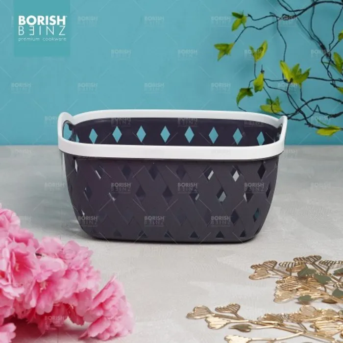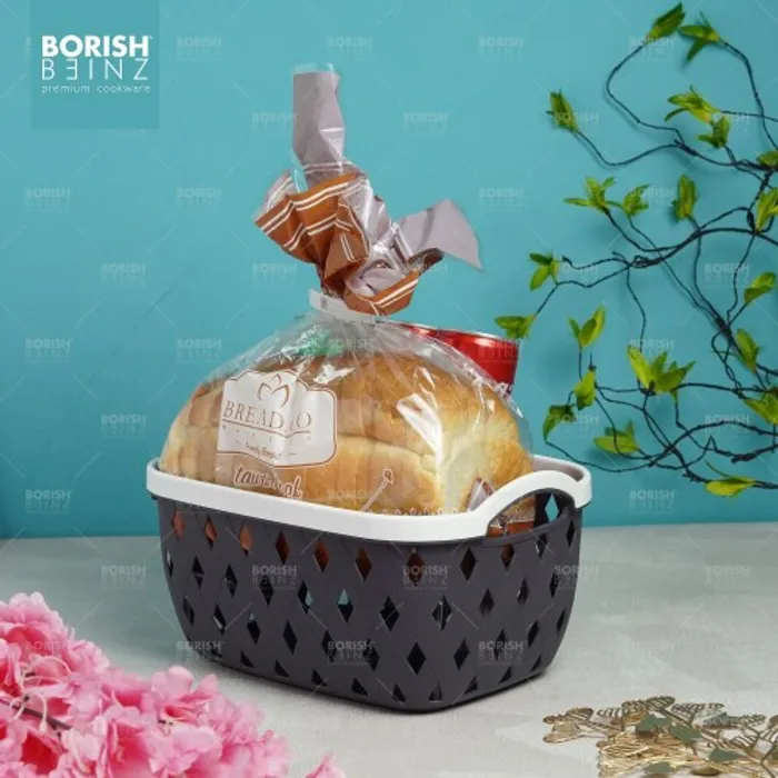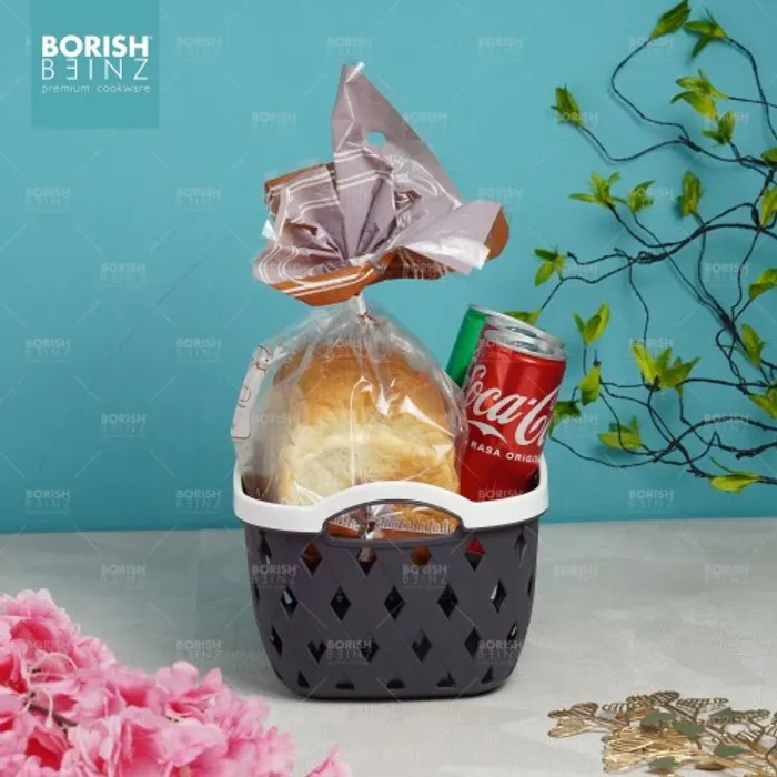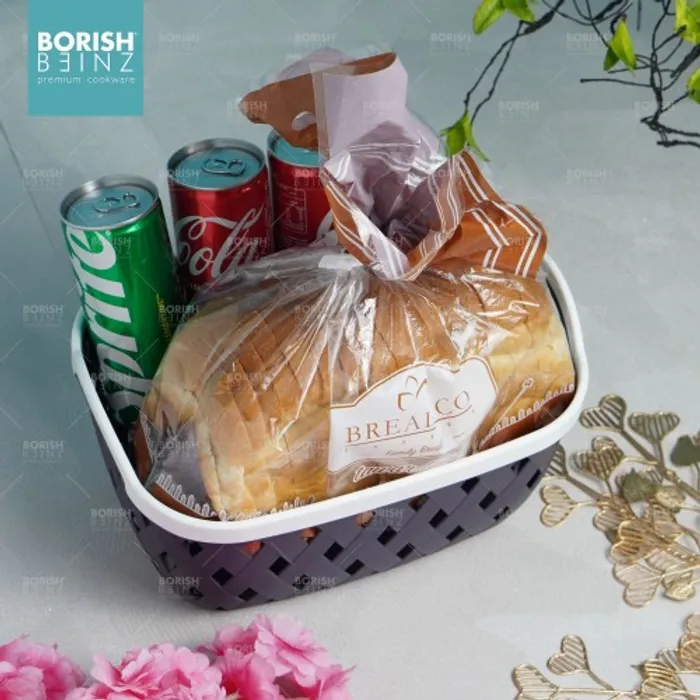 Keranjang serbaguna berbahan plastik tebal. Cocok untuk menyimpan aksesoris, kosmetik, snack, tempat souvenir.