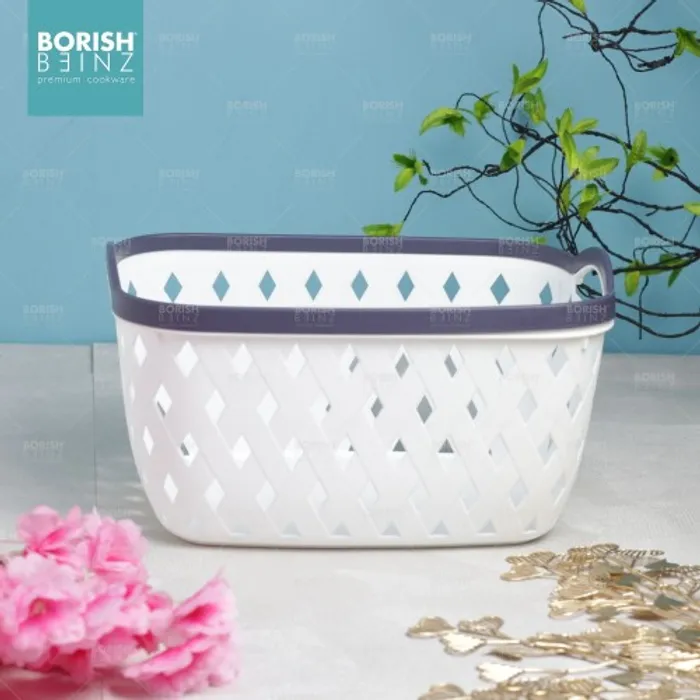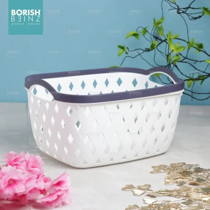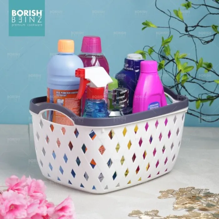 Keranjang serbaguna berbahan plastik tebal. Cocok untuk menyimpan aksesoris, kosmetik, snack, tempat souvenir.