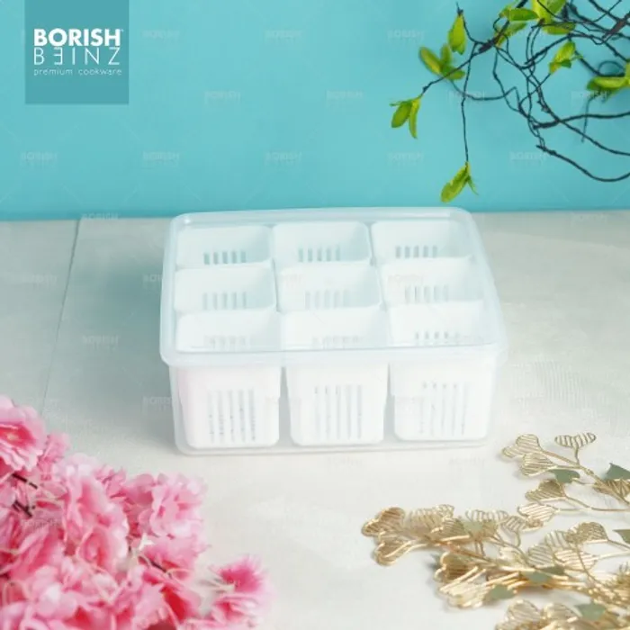 Kotak Penyimpanan dengan 9 sekat ini dapat memudahkan anda untuk menyimpan berbagai jenis bahan baku bahkan bahan makanan sekaligus.