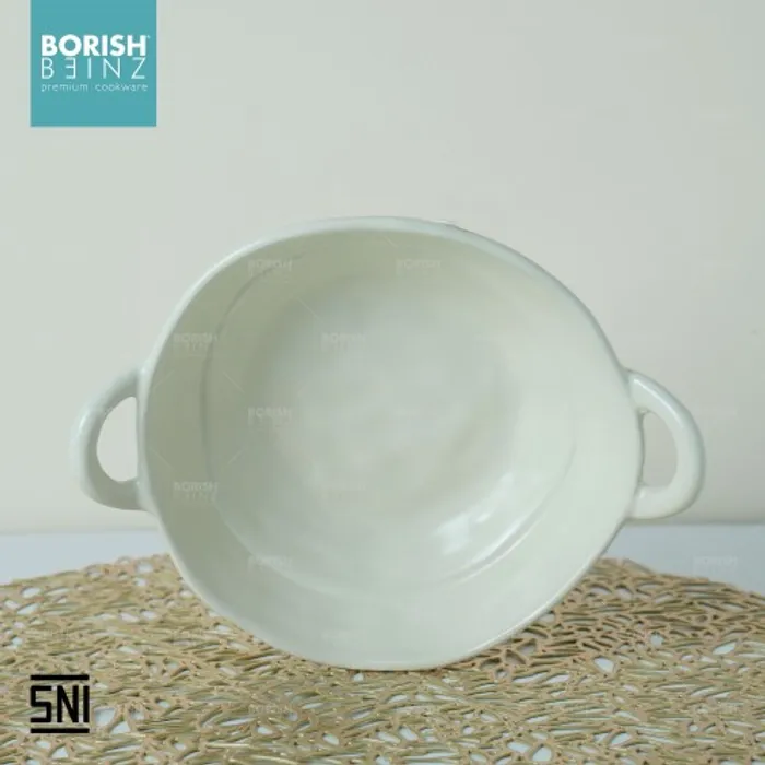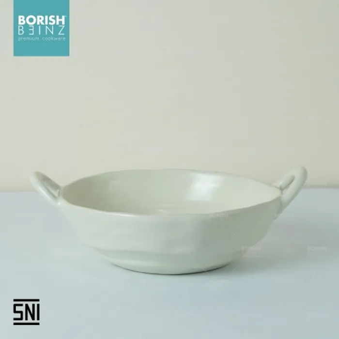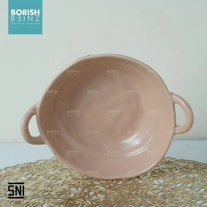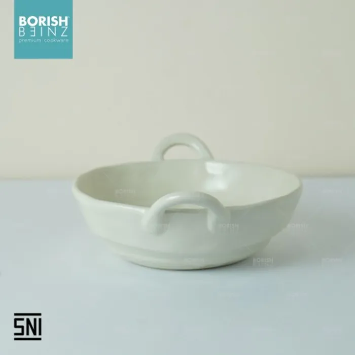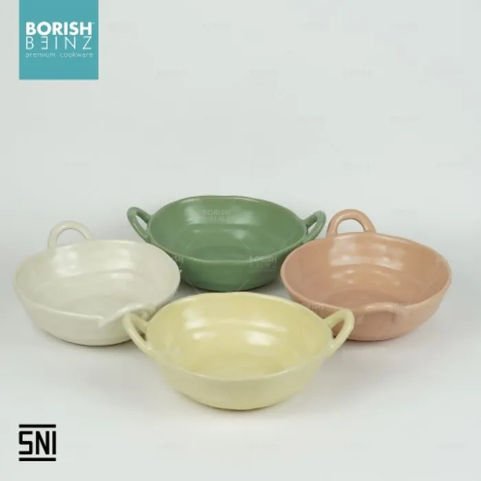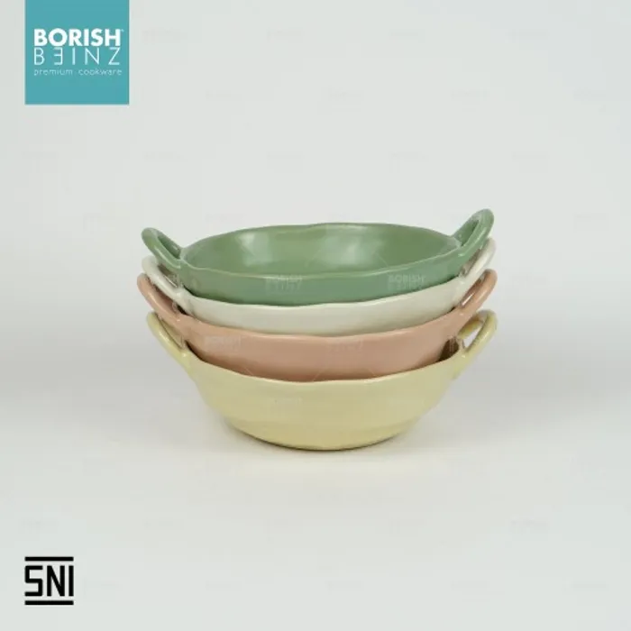 Spesifikasi Produk: 1. Berat: 465 grm 2. Diameter: dalam 6.5 inch 3. Tinggi: 5.5 cm 4. Warna: Krem , Pink , Hijau , Kuning 5. Material Ceramic 6. Ukuran diameter dengan handle 21 cm - Microwave & Dishwasher safe!!! - Harga Include Free Packaging & Bubble Wrap!!! - Memenuhi SNI (Standard Negara Indonesia) - Jaminan packaging aman sampai tujuan Seluruh produk Borish Beinz sudah melalui proses QC dgn kondisi 99%+ mulus, dikarenakan produk ini melewati proses pembakaran dgn temperatur tinggi, sehingga bintik hitam, gelembung tidak dapat dihindari (tidak mengurangi fungsi).