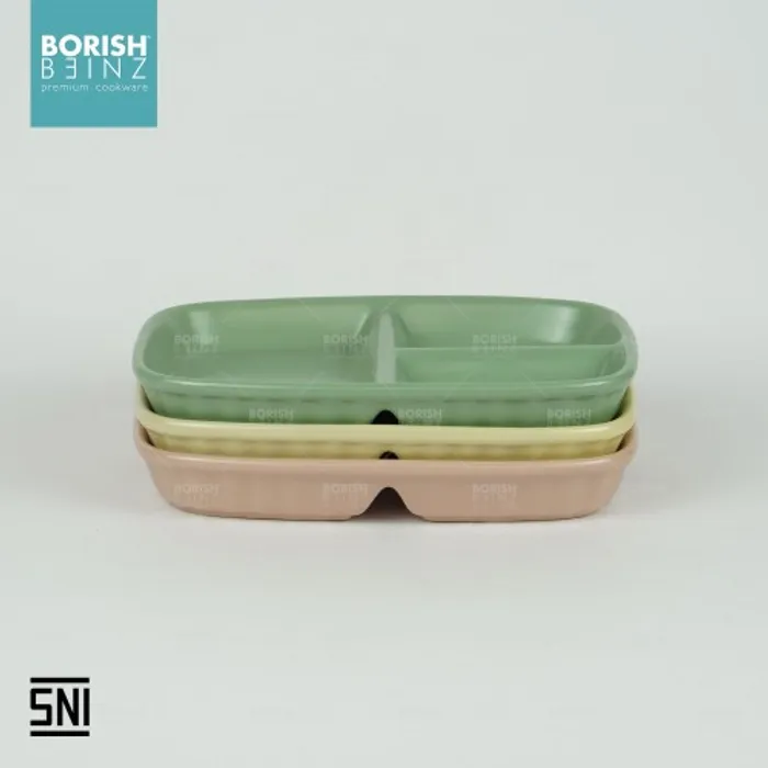 Spesifikasi Produk: 1. Berat: 867 grm 2. Panjang : 25 cm 3. Tinggi: 3 cm 4. Lebar: 16 cm 5. Warna: Kuning , Pink , Hijau 6. Material Ceramic - Microwave & Dishwasher safe!!! - Harga Include Free Packaging & Bubble Wrap!!! - Memenuhi SNI (Standard Negara Indonesia) - Jaminan packaging aman sampai tujuan Seluruh produk Borish Beinz sudah melalui proses QC dgn kondisi 99%+ mulus, dikarenakan produk ini melewati proses pembakaran dgn temperatur tinggi, sehingga bintik hitam, gelembung tidak dapat dihindari (tidak mengurangi fungsi).
