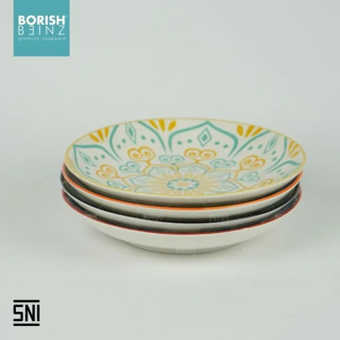 Spesifikasi Produk: 1. Berat: 351 grm 2. Diameter: dalam 8.5 inch 3. Tinggi: 4 cm 4. Lebar: 21.6 cm 5. Warna: Motif Random 6. Material Ceramic - Microwave & Dishwasher safe!!! - Harga Include Free Packaging & Bubble Wrap!!! - Memenuhi SNI (Standard Negara Indonesia) - Jaminan packaging aman sampai tujuan Seluruh produk Borish Beinz sudah melalui proses QC dgn kondisi 99%+ mulus, dikarenakan produk ini melewati proses pembakaran dgn temperatur tinggi, sehingga bintik hitam, gelembung tidak dapat dihindari (tidak mengurangi fungsi).