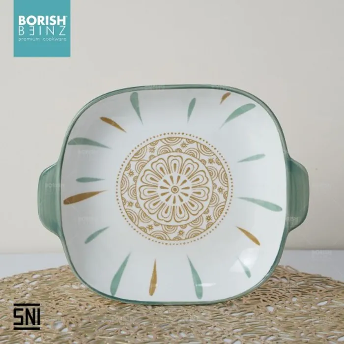 Spesifikasi Produk: 1. Berat: 505 grm 2. Diameter: dalam 8.5 inch 3. Tinggi: 4 cm 4. Lebar: 21.5 cm 5. Warna: Putih Motif 6. Material Ceramic 7. Ukuran diameter dengan handle 23 cm - Microwave & Dishwasher safe!!! - Harga Include Free Packaging & Bubble Wrap!!! - Memenuhi SNI (Standard Negara Indonesia) - Jaminan packaging aman sampai tujuan Seluruh produk Borish Beinz sudah melalui proses QC dgn kondisi 99%+ mulus, dikarenakan produk ini melewati proses pembakaran dgn temperatur tinggi, sehingga bintik hitam, gelembung tidak dapat dihindari (tidak mengurangi fungsi).