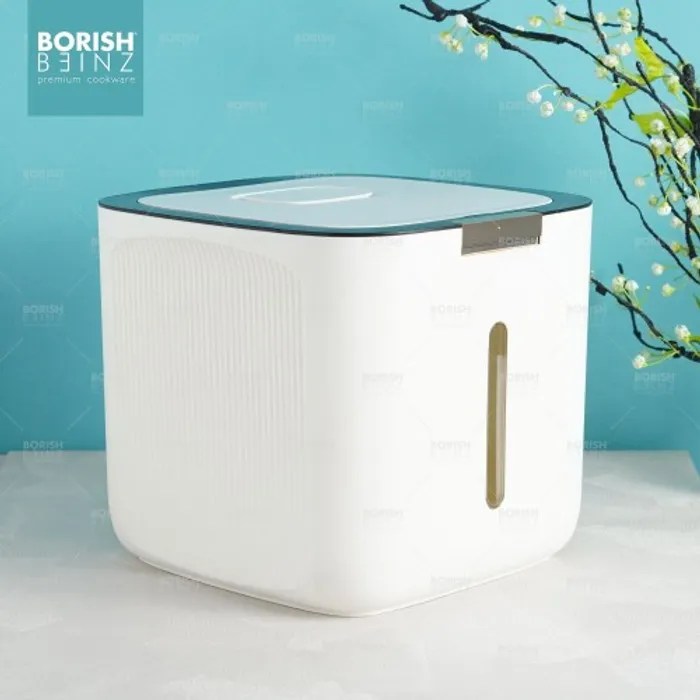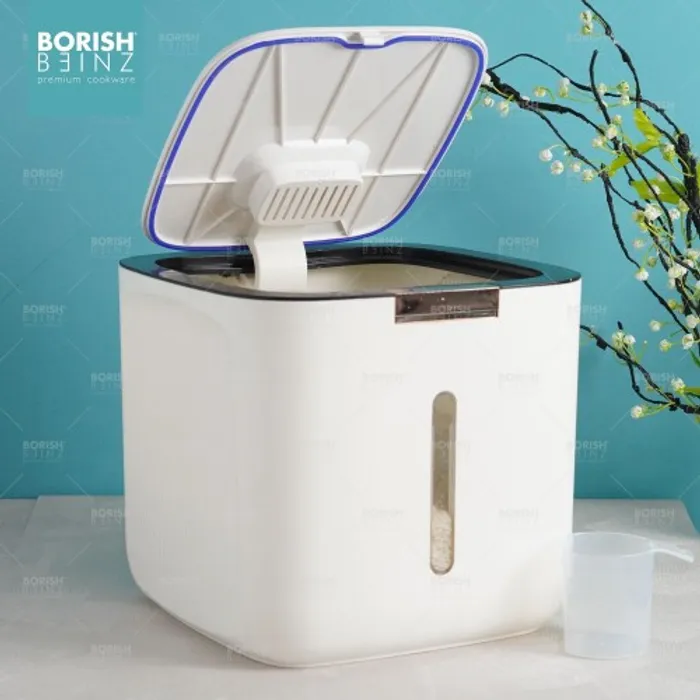 Dispenser beras otomatis anti kutu dan anti lembab, dilengkapi cangkir untuk mengukur. Tempat beras dengan menggunakan material yang aman untuk beras yang disimpan awet dan tidak berkutu, tidak merusak kualitas beras yang disimpan.