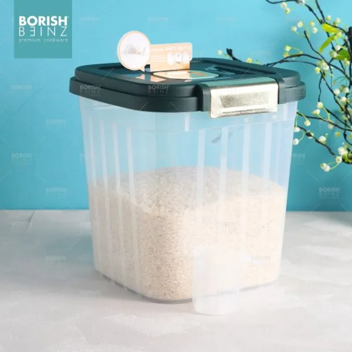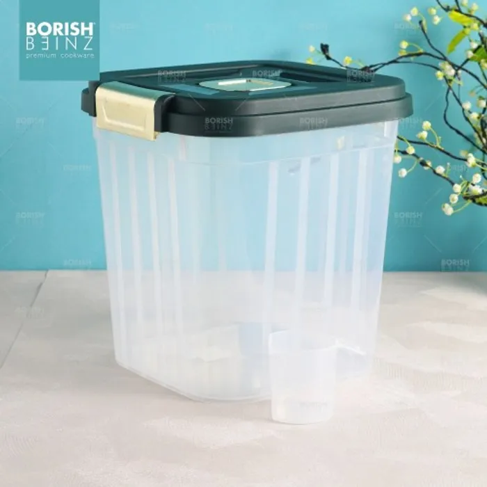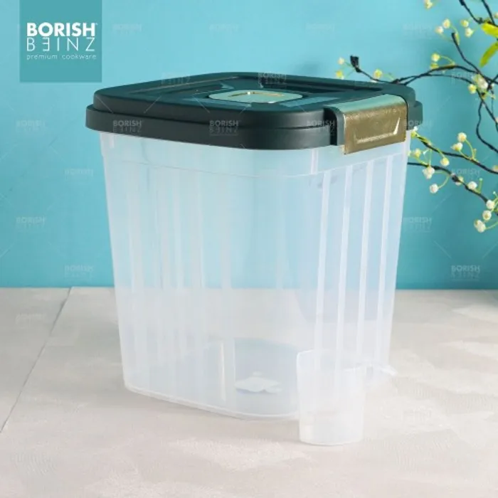 Dispenser beras otomatis anti lembab, dilengkapi cangkir untuk mengukur. Tempat beras dengan menggunakan material yang aman untuk beras yang disimpan awet dan tidak merusak kualitas beras yang disimpan.