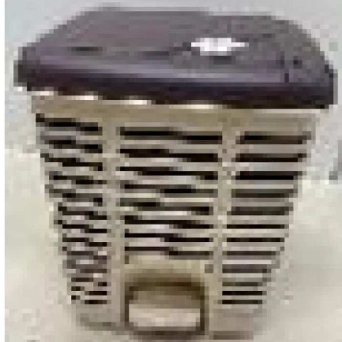 Tempat sampah kotak model injak dengan handle dalam wadah untuk mempermudah mengeluarkan sampah .