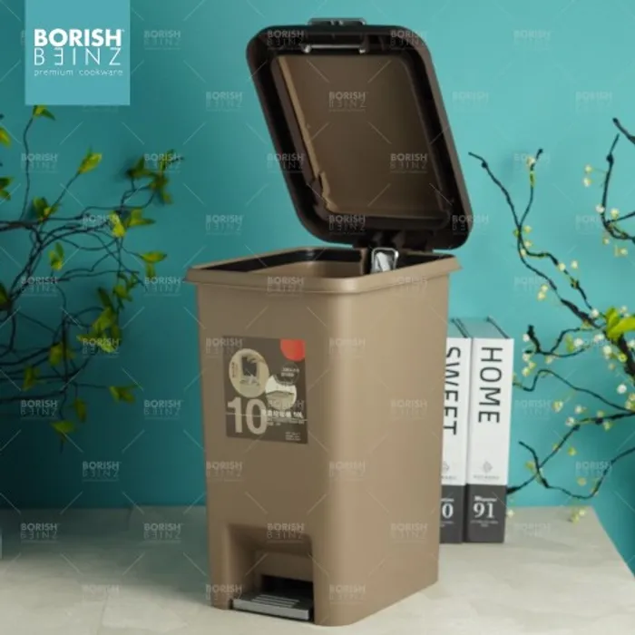 Tempat sampah kotak model Injak dengan fitur penutup ganda berupa tombol diatas tempat sampah dan injakan di bawah tempat sampah untuk kemudahan memasukan sampah kedalam wadah.