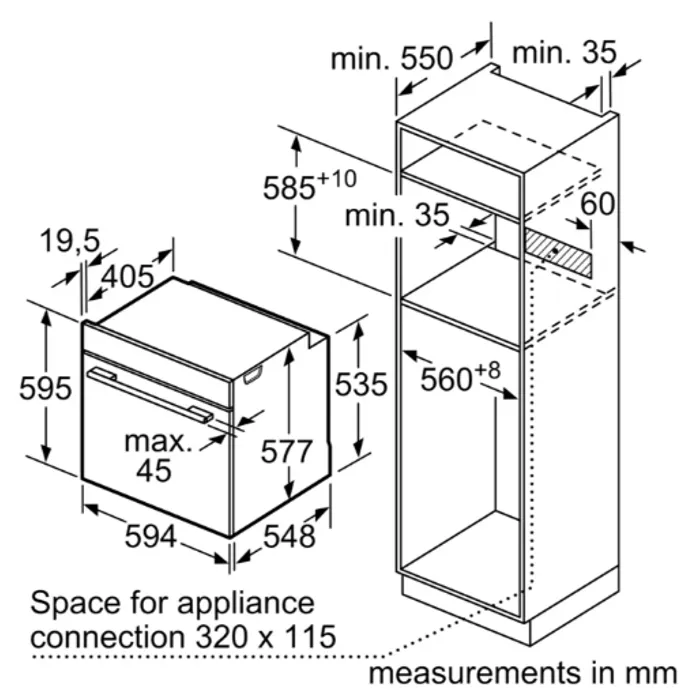 -Ukuran perangkat (DxLxT) 595 mm x 594 x 548 mm