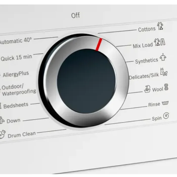 - Program tambahan: Cottons, Mix Load, Synthetics, Dellicates/Silk, Wool, Rinse Spin, Drum Clean, Down, Jeans, Bedsheets, AllergyPlus, Outdoor/Waterproofing, Quick 15 min