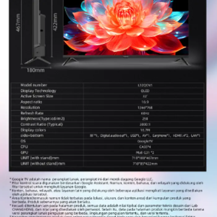- Resolusi : HD (1366*768)