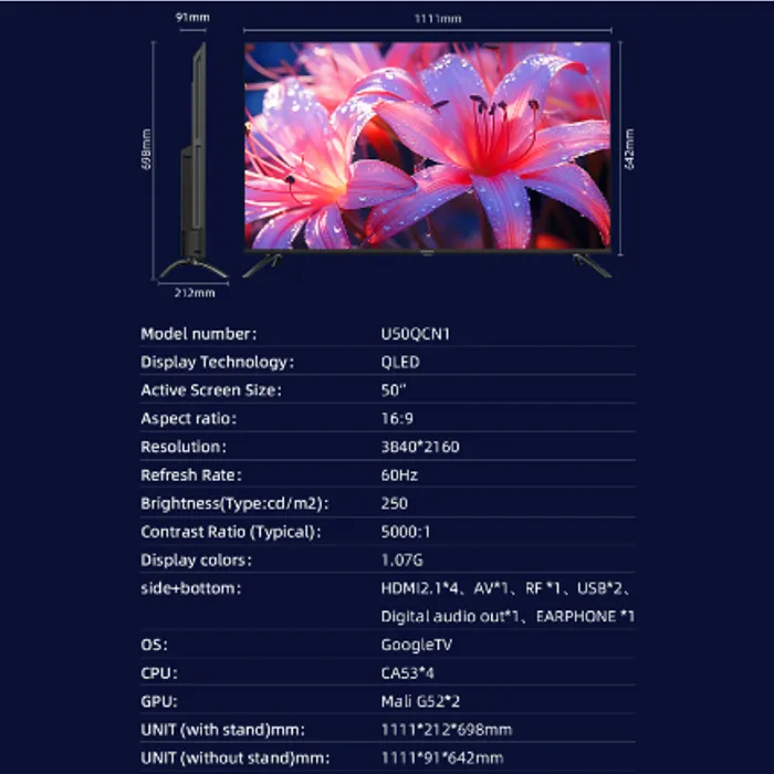 Changhong U50QCN1 QLED TV 4K 50inch Google Smart TV Digital TV U50QCN1