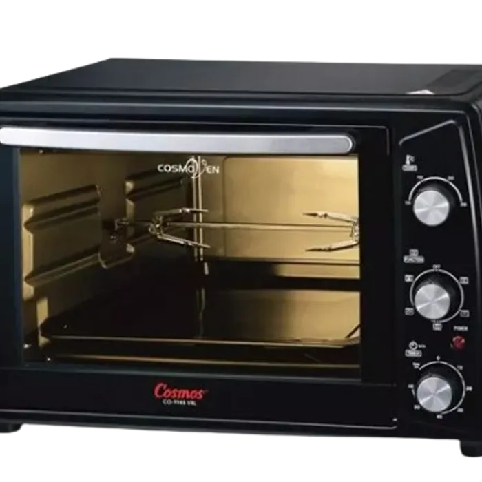 Oven Listrik Cosmos CO-9945 VRL memiliki kapasitas 45 Liter, daya listrik mulai dari 750 watt hingga 1.500 watt, fungsi pemanas yang bisa diatur sesuai kebutuhan (atas dan bawah, khusus atas, khusus bawah), fungsi rotisserie berupa besi pemanggang yang berputar otomatis untuk memanggang 1 ekor ayam utuh, fungsi fish grill berupa pemanggang yang berputar otomatis untuk memanggang 1 ekor ikan utuh, lampu untuk memudahkan melihat proses/hasil memanggang, dan fungsi convection/blower yang membuat hasil memanggang lebih merata dan menyeluruh