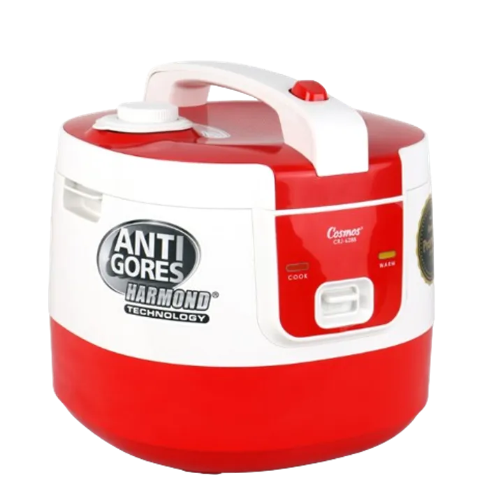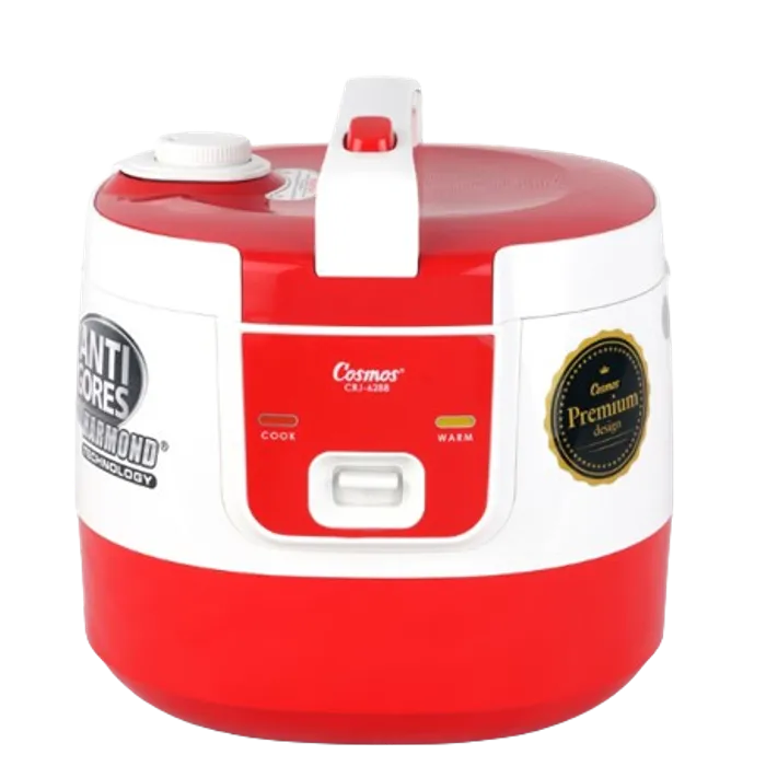 Cosmos CRJ-6288 Magic Com Red 2 Liter Harmond Memiliki lapisan panci yang telah melalui 4 tahap pelapisan dengan lapisan anti lengket Bebas PFOA (Perfluoroctanic Acid) Lebih tahan gores, lebih awet dan lebih sehat.