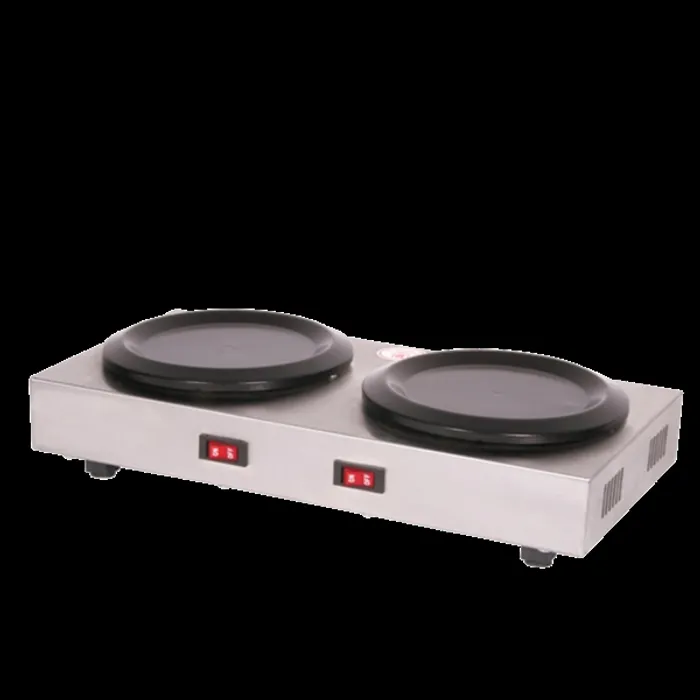 Coffee Warmer adalah kompor untuk penghangat kopi dan teh dengan 2 tungku kanan-kiri, body terbuat dari stainless steel dan bagian heater terbuat dari plate. Model simple dengan body slim dilengkapi dengan lampu indikator on/off.