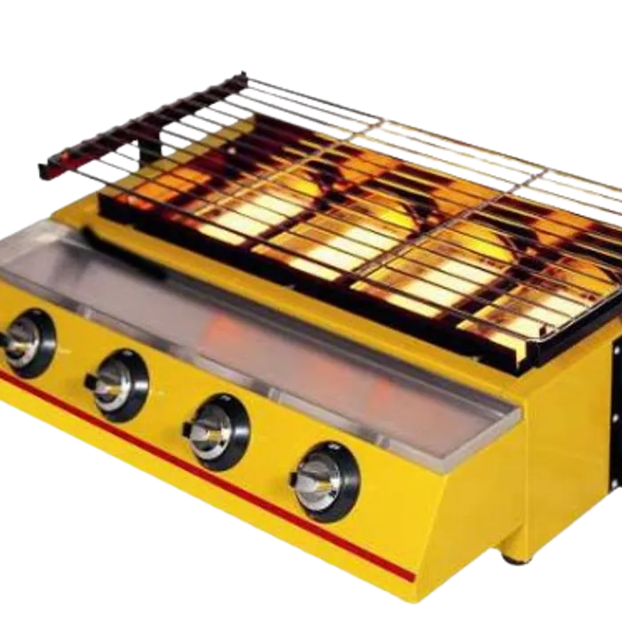 Alat pemanggang kompor Gas tekanan rendah dengan 4 Tungku hadir untuk melengkapi bisnis usaha maupun perlengkapan dapur rumah Anda, bisa untuk usaha sosis bakar, Ayam bakar, kompor panggang, Steak, Ikan bakar, Otak-otak maupun untuk panggangan Sate dengan keistimewahan tanpa perlu khawatir memanggang maupun memasak tanpa asap, Ketinggian panggangan dapat dengan mudah diatur, Ideal dalam penempatan & Mudah untuk dibersihkan.