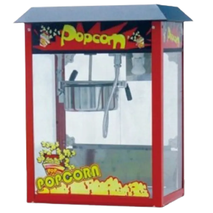 Popcorn Machine adalah mesin yang digunakan untuk membuat popcorn dalam skala besar. Biji jagung hanya perlu ditempatkan di panci yang ada didalam mesin dan menunggu hingga biji jagung kering menjadi berondong jagung. Popcorn Machine ini banyak ditemui di Bioskop, dan Karnaval. Popcorn Machine ini berukuran 550 x 400 x 730 dengan kekuatan 1.450 W dan berat 19 Kg.