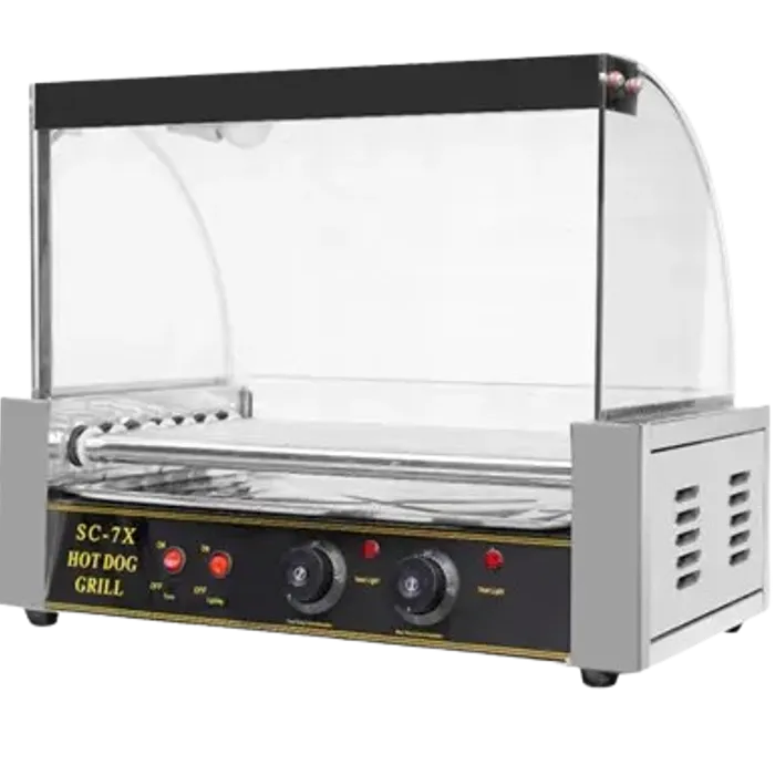 Mesin Hot dog roller ini dapat memanggang beberapa sosis sekaligus sehingga dapat mempercepat proses pemanggangan, roll – roll yang selalu berputar membuat sosis matang sempurna. Selain mudah dalam proses penggunaannya, mesin hot dog roller ini juga mudah dibersihkan karena setiap bagiannya dapat dilepas. Pada bagian kakinya juga terdapat bahan karet sehingga nyaman untuk diletakkan dimana saja.
