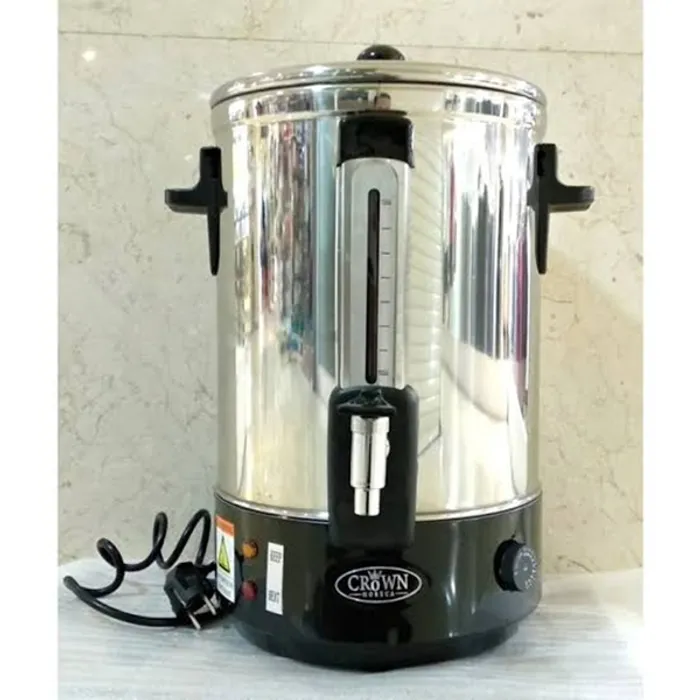 Alat ini dilengkapi dengan kontrol pengaturan temperatur, indikator level air, dan otomatis akan mati ketika panasnya sudah optimal. Bagian dalam dan bodi luar dari alat ini dibuat dari stainless steel berkualitas tinggi, sehingga membuatnya kuat, tidak mudah penyok, dan mudah dibersihkan. cocok digunakan untuk usaha catering, restoran, hotel, ataupun bagi Anda yang suka mengadakan pesta di rumah.