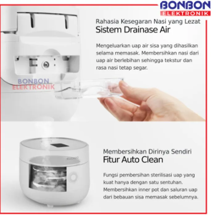 4. Konsumsi listrik: 580 Watt (memasak) | 80 Watt (menghangatkan).
