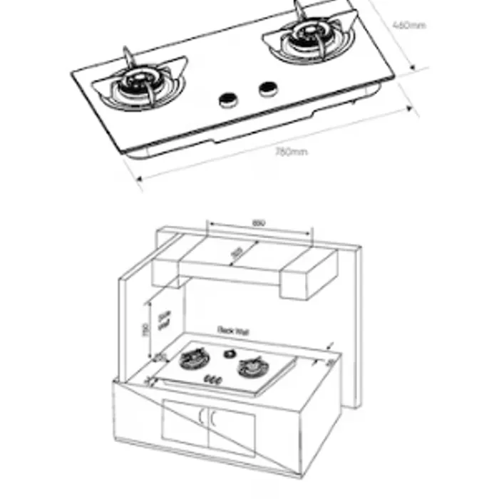 Kompor Tanam Gas Hob Ganar 78cm EHG7230BE