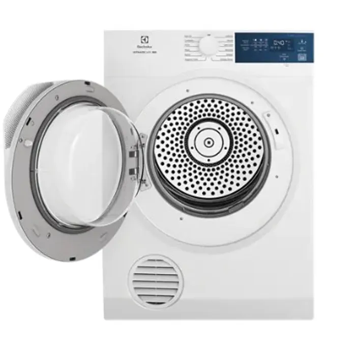 • Sensor yang menyesuaikan siklus pengeringan untuk mengurangi keausan pakaian.