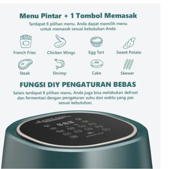 5.) Dilengkapi dengan fungsi DIY, pengguna dapat mengatur waktu dan suhu secara custom sesuai kebutuhan.