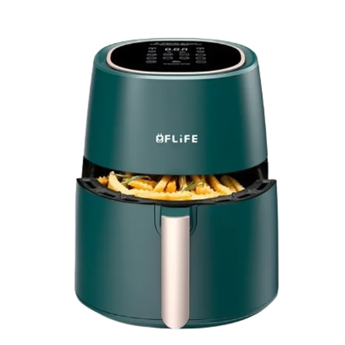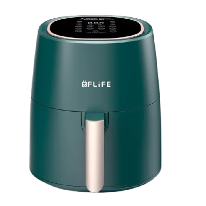 Air Fryer AF45-700LB dengan kapasitas 4.5 Liter memiliki desain perpaduan Dark Green dan Gold yang menawan membuat FLiFE Air Fryer menjadi lebih elegan. Kami membuat cara memasak yang lebih sehat daripada memasak menggunakan minyak.