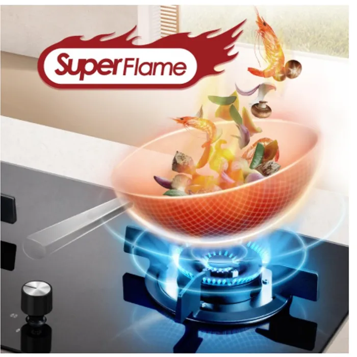 Super Flame, More than high flame power, efisiensi panas hingga 60%, menghasilkan api yang besar memasak tanpa rasa khawatir