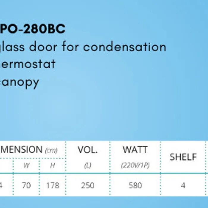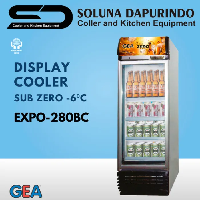 Kabinet display dengan fitur thermostat digital yang dirancang khusus untuk mendinginkan minuman bersoda dan beralkohol dengan temperature (-2)~(-6)°C yang menghasilkan frost beverage saat produk dituangkan ke dalam gelas.