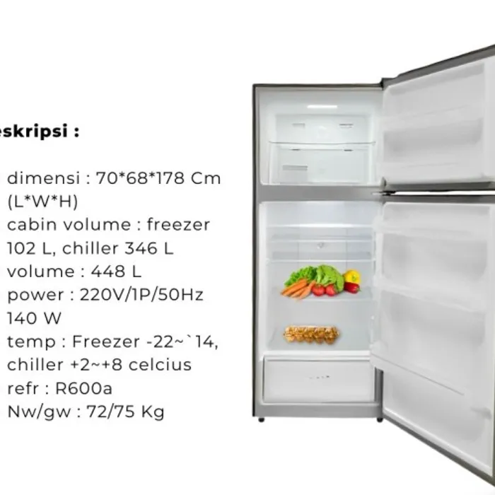 • 2 Compartments (Top : Freezer, Bottom: Fridge)