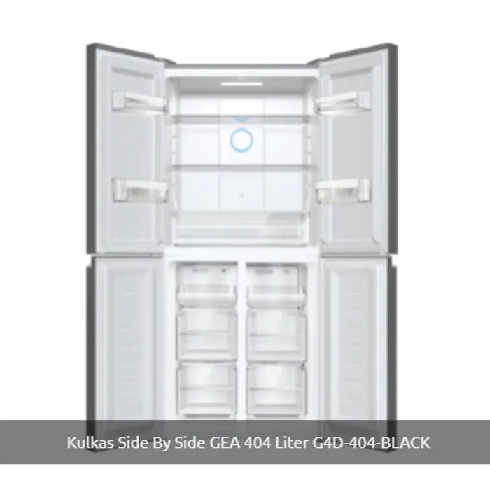 Kulkas GEA 4D REF G4D404 BLACK sudah menggunakan kompresor inverter, berkapasitas total 404 liter, dan bertipe multi-door empat pintu